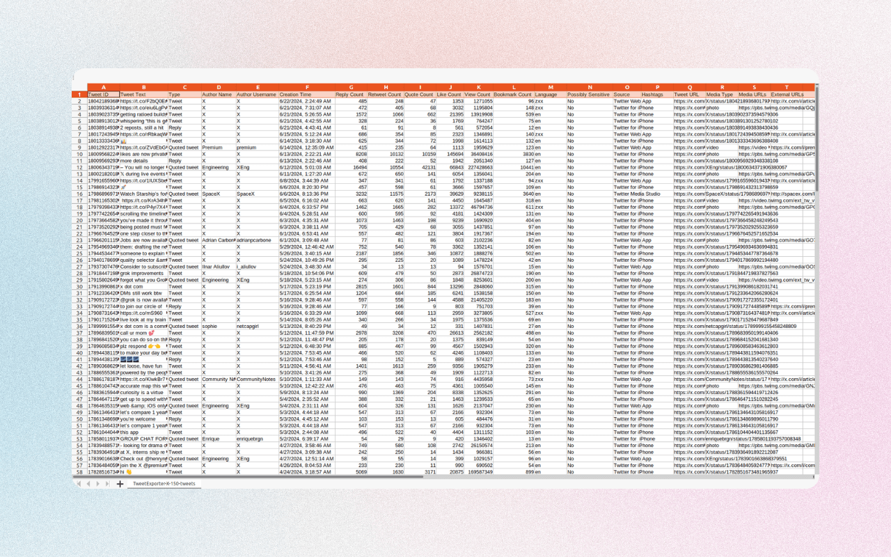 Save time and effort by exporting tweets from any Twitter account to CSV with just one click. Analyze tweet data, track user activity, archive content, and manage your social media strategy more effectively.